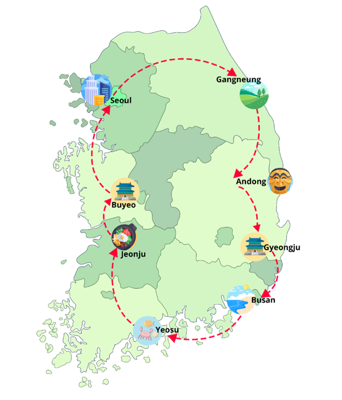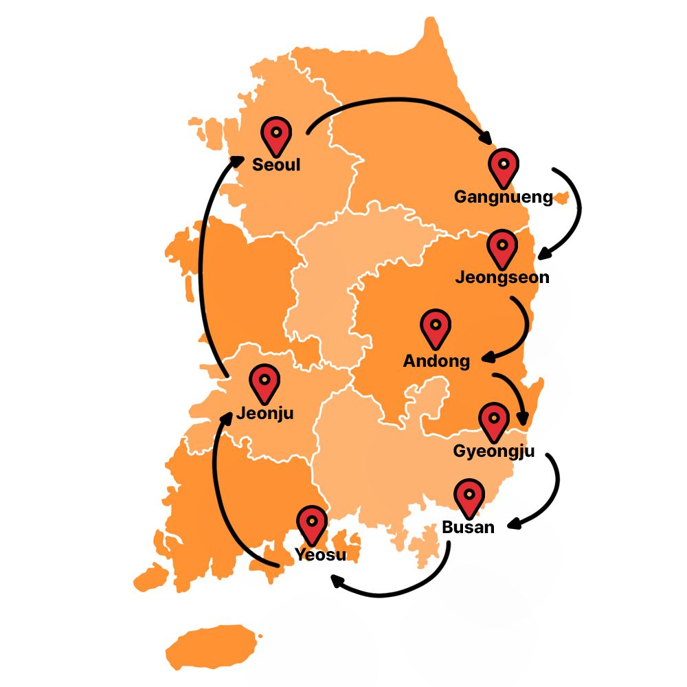 RingKtrip is a customizable travel system that lets you explore Korea beyond a single city or a fixed itinerary. Choose from seven independent tours connecting key destinations across the country, and travel one segment or combine multiple routes to create your own journey.